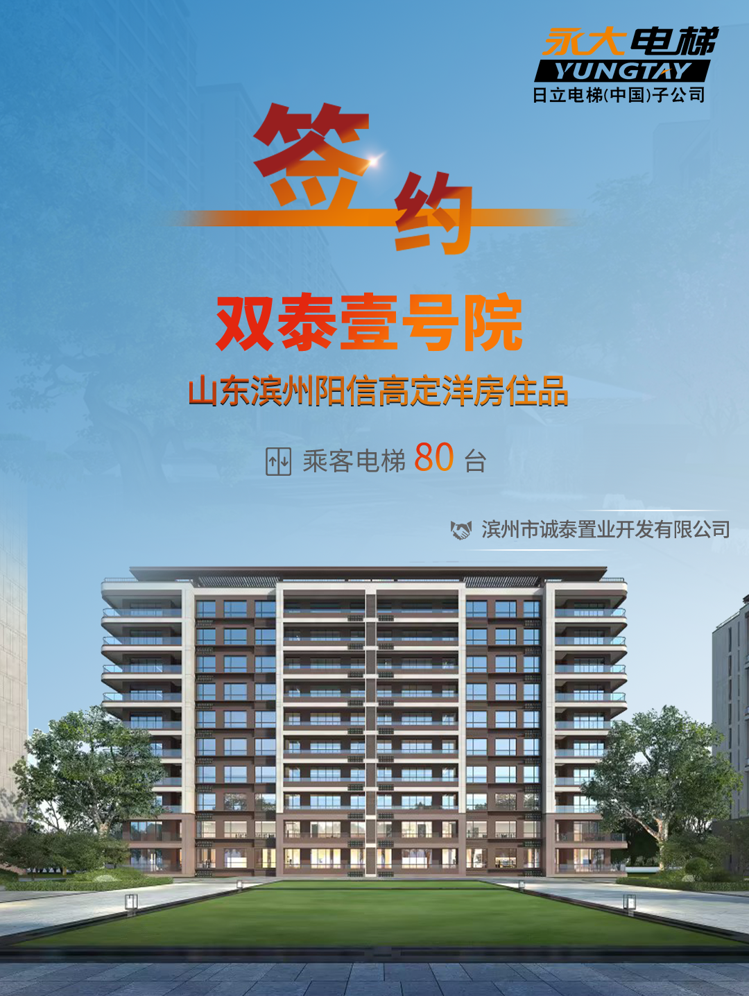 高品味生活,離不開高品質(zhì)交付;永大電梯攜手濱州雙泰壹號院啟程美好城市生活!